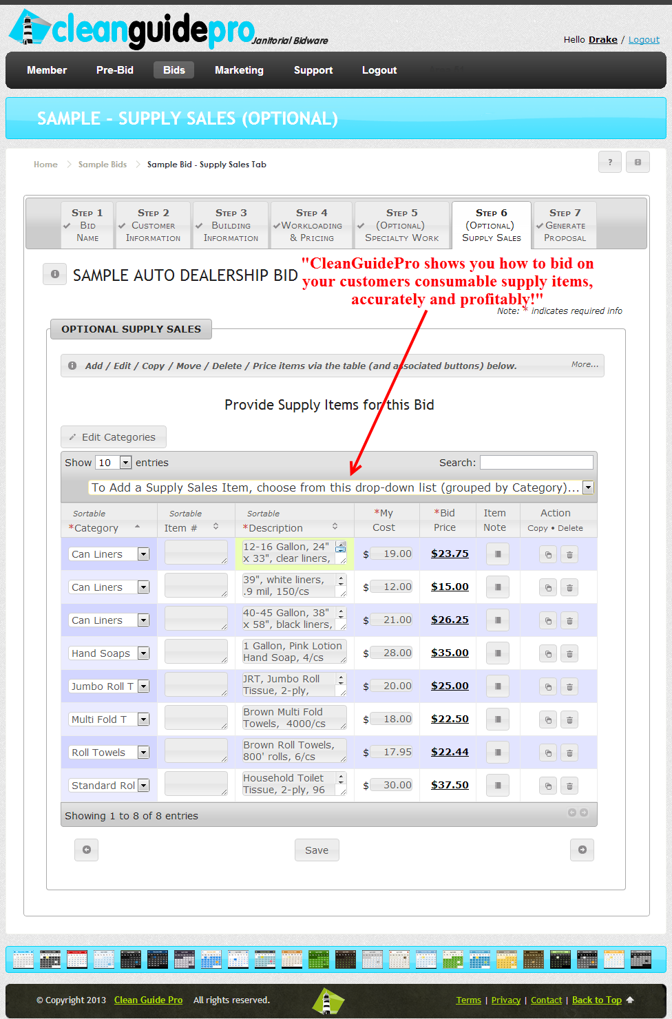Unlimited, ready-to-deliver Janitorial, Construction Clean and Residential proposals. You're guided step-by-step through the bid creation process (which includes written and video Help and Tips, plus lots of demo and sample bids). At an unmatched low monthly price!